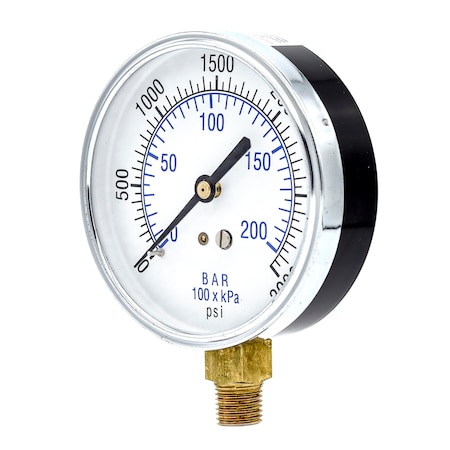 3 1/2" Chrome Dial Gauge 1/4" Bottom Mount 0-200 PSI