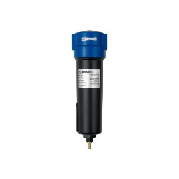 Cyclonic design generated by inclined blades allow fluids to be collected at the bottom of the drain. Eliminates solid particles, liquids, and lowers air temperature before treatment. Flow rate of 215 cfm. Pipe connections are 1 fnpt.