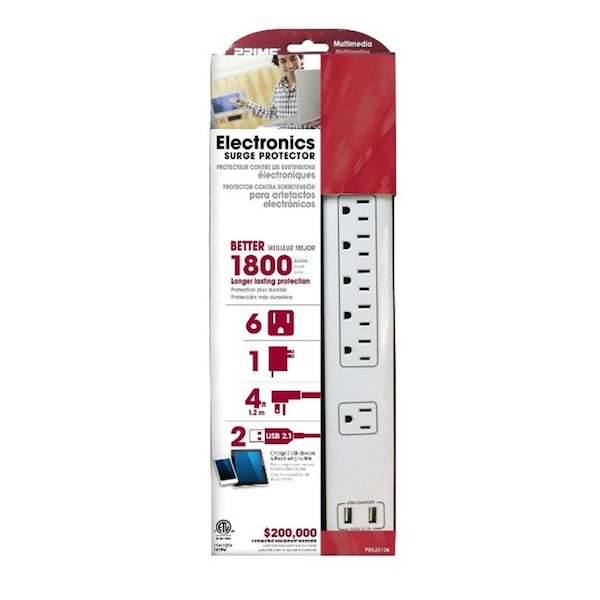 Features -6-Outlet 14 & 3 SJT White Electronics Surge Protector Specifications - Color: White - Weight: 1.35