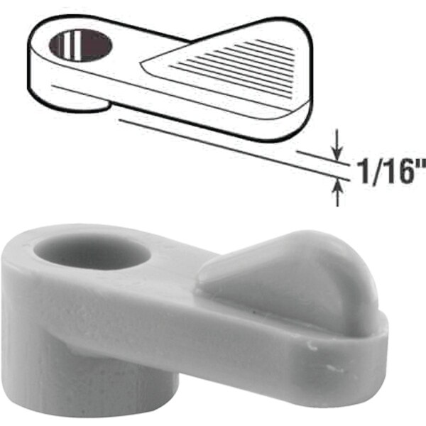 Plastic Window Screen Clip is used to secure the Window Screen to the frame and is attached with a screw so that the clip can twist and latch over the screen frame. Screws included. 12 each per card.