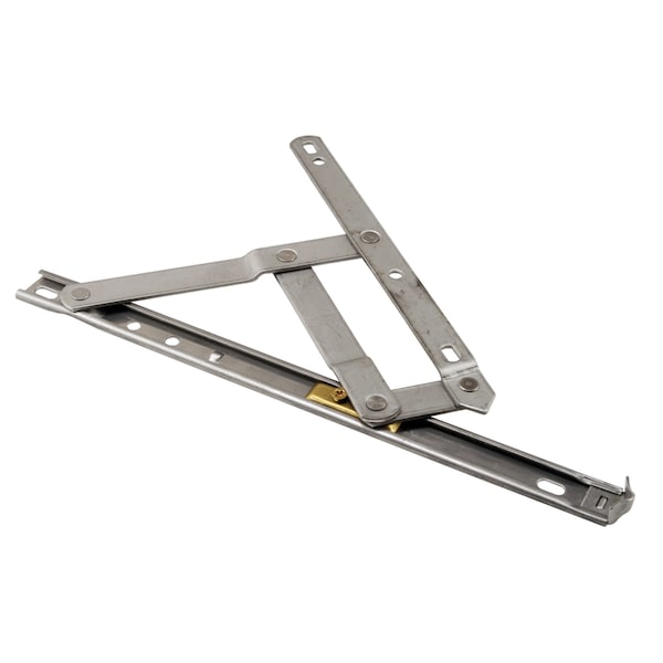 This is a pair of stainless steel 12 in. hinges used on casement or projecting windows. This type of hinge is used by a variety of window manufacturers of wood or vinyl casement windows. When selecting the correct hinge compare the length of the mounting bracket with the length of the bracket from the window hinge to be replaced. Also note whether there are 4 different bars; 3 actuating bars and 1 mounting bracket.Used by a variety of wood and vinyl window manufacturers Non handed for left or right windows 12 in. mounting bracket Made of stainless steel 4 bar design Mounting hardware included A Phillips head screwdriver is required for installation For further dimensional information, please see the line drawing
