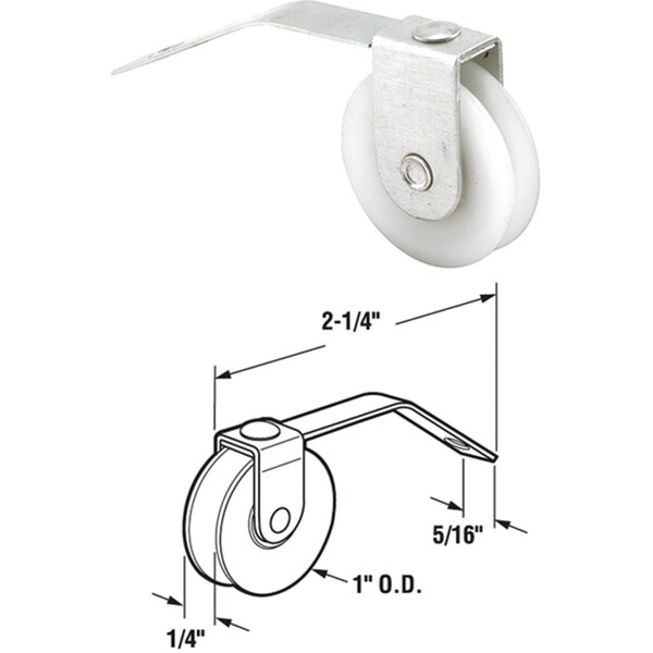 Aluminum screen door roller with 1 nylon roller. Fits Academy doors. 1 pair per card.