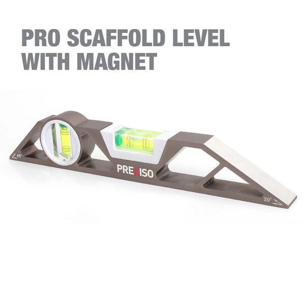 Looking for a quality level you can use on smaller jobs? This 10-inch PREXISO scaffold level is built tough to match the dependability required by professionals. Use this level for quick and accurate measurements of either 90 or 180 degree readings when working on your project. The aluminum body of this level adds strength and durability, and the magnetic base allows for hands-free operation on most metallic surfaces. Every Do-It-Yourselfer, and professional should have a scaffold level in their toolbox, so order yours today and work easier tomorrow.