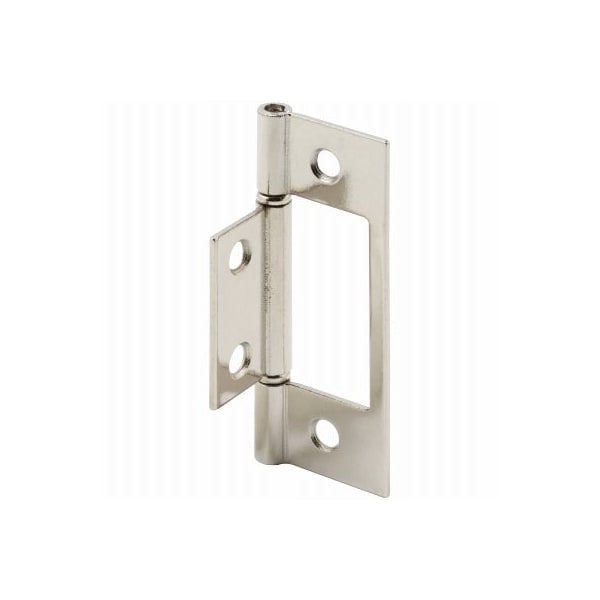 2 Pack, Satin Nickel bifold door hinges Constructed of steel Features a nonmortise design allowing them to be easily mounted on the door's edges, avoiding the need to chisel and mortise for installation For best results, use a 332 bit to drill pilot holes prior to screwing in fasteners to avoid splitting wood These door hinges are used on bifold doors by a variety of wardrobe manufacturers Carded