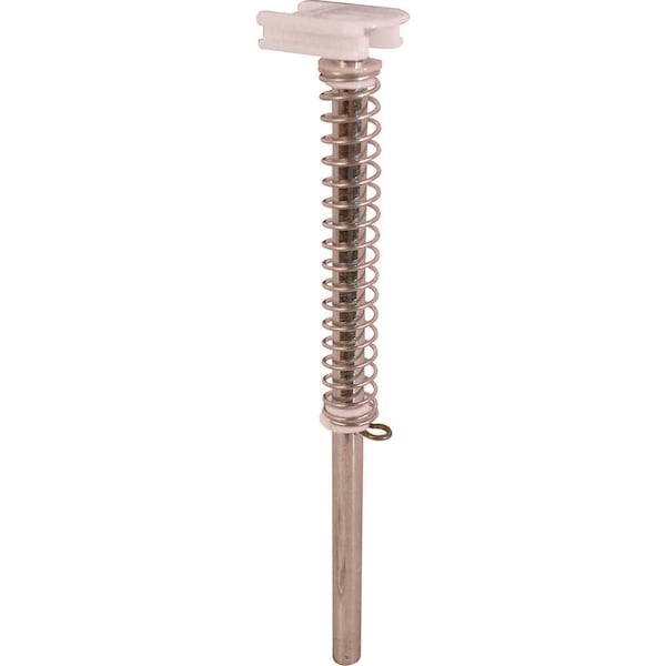 This is a fi-fold door guide pin assembly with a special nylon slide cap. It is used for a 11/16 in. track opening on a 1/4 in. outside diameter x 5-1/4 in. steel pin. Includes coil spring and cotter pin retainer.Bi-fold door pivot guide rodGuide interlocks with track1/4 in. X 5-1/47 in. rodZinc-platedIncludes tension springFor further dimensional information, please see the line drawing
