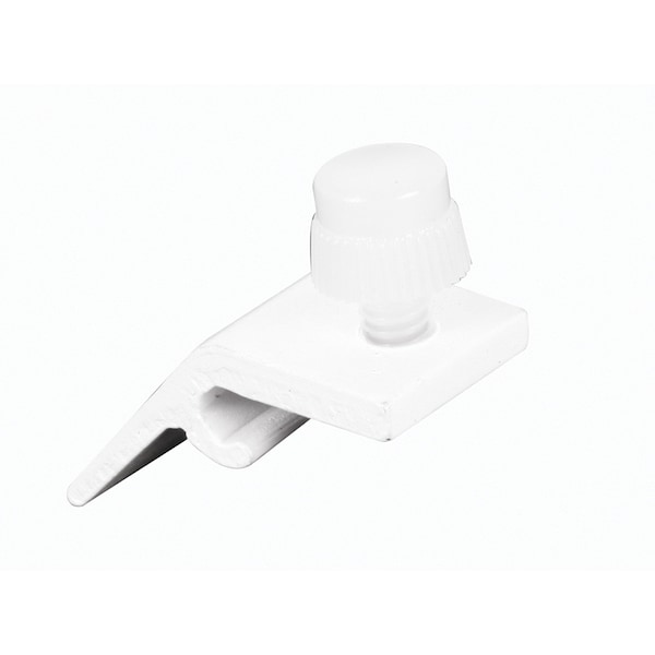 These storm door panel clips are constructed from aluminum and come in a white finish. Typically they help to secure your glass and screen panels to your storm door frame. Dimensions are a 1 in. length, with a 1/2 in. width and a 7/16 in. offset. The self-locking design features adjustable tension and fits standard taps. Each 8 pack comes with knurled head screws that do not require tools to install.Secures storm window panels to storm doors Constructed of extruded aluminum with a white finish Features a deep reach 7/16 in. offset Includes knurled head thumb screw Can use an adjustable wrench to tighten, use caution not to over tighten and cause damage 8 Storm panel clips and knurled head screws per package For further dimensional information, please see the line drawing