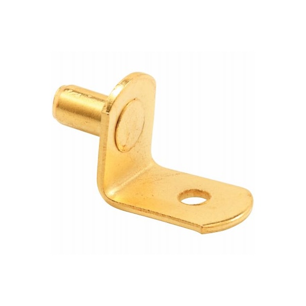 8 Pack, 20 lb 14 in BrassPlated Steel LShelf Support Pegs Constructed from heavyduty steel The shelf support pegs are commonly used in bookcases, stereo and storage cabinets to support adjustable glass and wood shelving at up to 25 lbs per support peg The shelf support pegs features a 14 peg diameter and they are easy to install Use pliers to remove any stubbornstuck pegs Avoid using levels where hole's diameter has been widened Carded