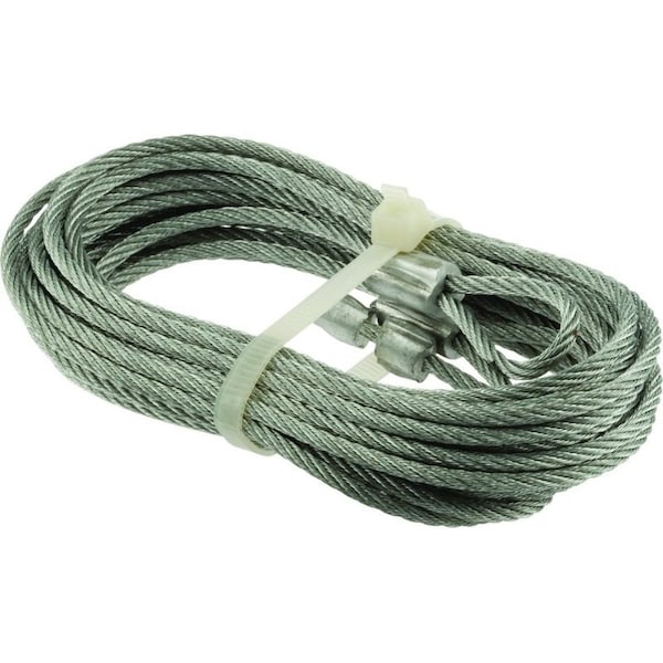 Galvanized carbon steel aircraft cable used on 7 ft H torsion spring doors.