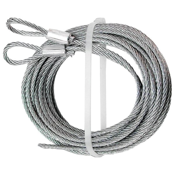 Galvanized carbon steel aircraft cables used on extension spring doors. 1/8 in replaces most wood doors, 3/32 in replaces most fiberglass and aluminum doors.