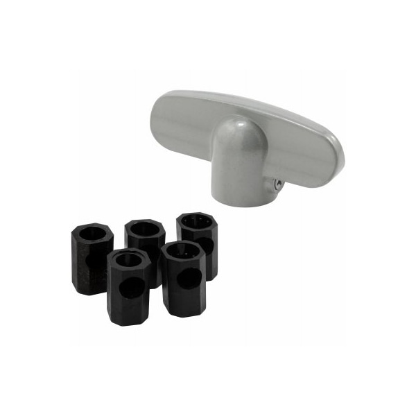 Teecrank diecast universal handle made of aluminum It comes with 5 inserts that allow the Thandle to fit the 5 most popular sized casement operator spindles The adaptor fits over the existing operator spindle and is locked onto the spindle with the Thandle set screw