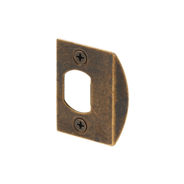 These standard latch strikes are constructed of steel and come in a antique brass plated finish. They feature an adjustable tab designed to eliminate the door slop and chatter of closed doors, and they’re installed with two #8 x 1 inch fasteners included with each package. These latch strikes are used by many to replace most residential interior and exterior door strikes. Adjustment tip: to eliminate the loose rattling of a closed door, remove the strike plate and bend the tab slightly with a pair of pliers, adjusting left to right as necessary.