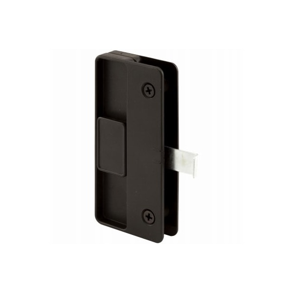 Sliding Screen Door Latch and Pull, 3 in Hole Center, Black Plastic This patio sliding door latch and pull is constructed of a black plastic housing with a steel latch This type of latch and pull requires a mortise installation, as the steel latch protrudes internally through the screen door frame Fasteners and installation instructions included This nonhanded screen door latch and pull is used to replace damaged or missing latch and pulls on sliding screen doors