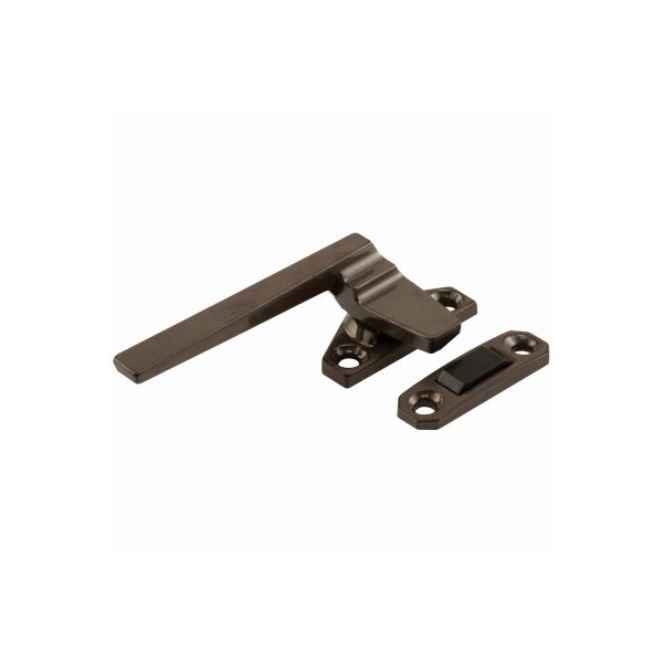 Bronze lefthanded diecast casement locking handle with an offset base found on many contemporary casement windows as viewed for the inside looking out The mounting holes are positioned offset of the centerline down the base placing them closer to the window frame edge by 1316 in from the tip of the lock to the center of the mounting holes This handle has an a bronze finish with mounting holes for the handle assembly and the keeper at 112 inches apart