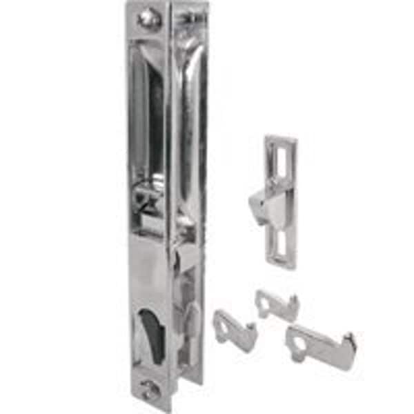 Diecast, Flush Mount, Standard Hook fits all popular flush lock punch outs, reversible latch hook, chrome keeper Contains one inside latch and pull, one outside pull, one wood handle, one spacer, one keeper, four hook assortment, installation fasteners