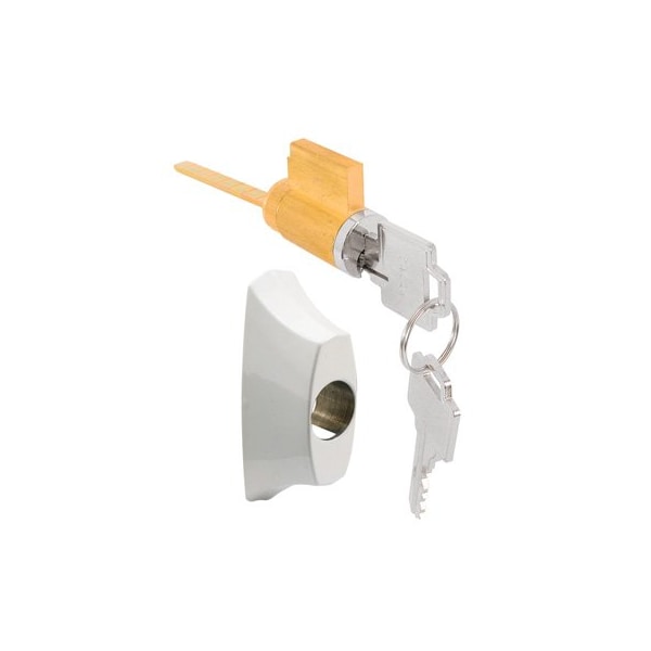 This sliding patio door keyed locking unit is constructed of diecast and comes in a corrosion-resistant, white-painted finish. This locking device is designed to convert non-locking Prime-Line patio door handle sets (model number: C 1177, C 1131 and C 1204) to keyed locking handles. This lock features a 5-pin tumbler with 2 keys. The lock body is solid brass construction with a hardened break-away tailpiece. Use to replace damaged key cylinders in most surface mount handles.