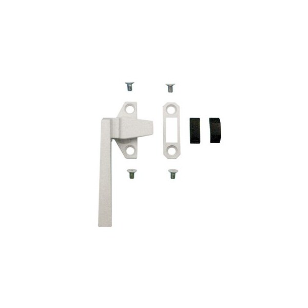 This is a left-hand cam style casement locking handle that rotates 90 degrees to lock or unlock the sash. It is diecast construction with a baked enamel white finish. The latch rotates over the keeper to tightly lock the sash against the weather-stripping. The keeper comes with 2 nylon inserts of different heights (0.218 inch and 0.344 inch high) to make sure the lock has a tight fit.