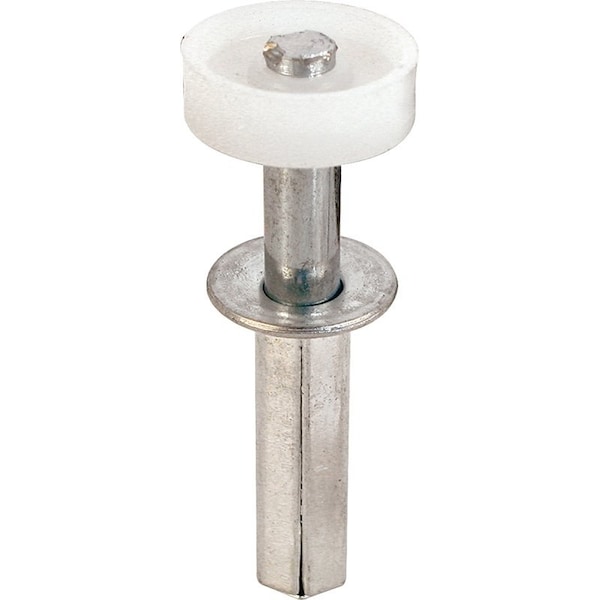 Steel base; fits Acme and Cox doors. 1/4 in W nylon wheel with 7/16 in OD x 1-1/2 in H steel base self-adjusts from 1-7/8 to 2-1/2 in in track for smooth guiding of lead door. For 1 to 1-3/8 in thick bi-fold doors up to 30 lb each.