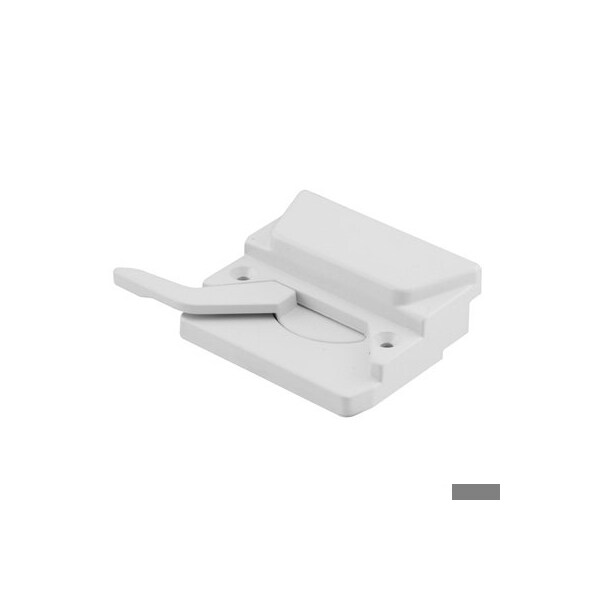 This Truth Hardware Casement Window Sash Lock is constructed of diecast zinc and comes in a white-painted finish. It is a right-handed lock and it features a low profile design to remain in-line with the thickness of the window's sidestop trim. The mounting holes are spaced apart at 2-3/8 inch, on center, and it comes complete with its keeper and installation fasteners. When the lever is activated, the locking cam engages the keeper, drawing the window tightly closed against the weather stripping. These locks have a stepped underside and are easy to install.