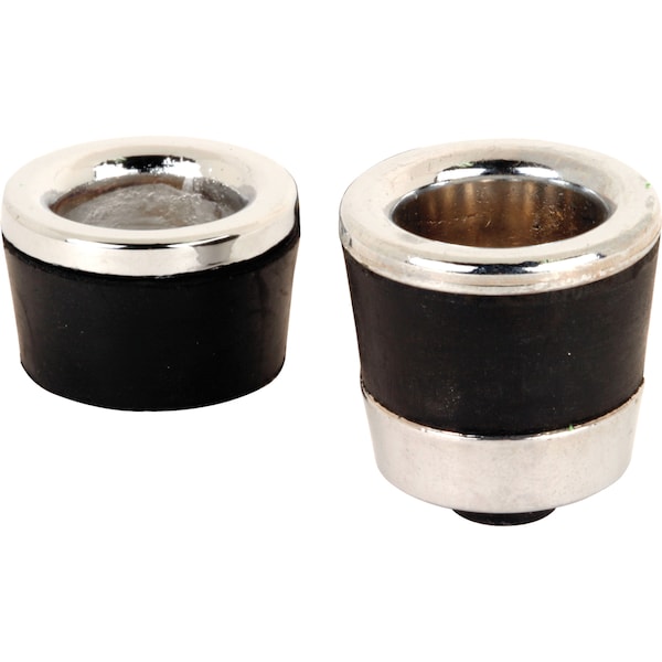 These sliding shower door pulls are constructed of diecast and black rubber sleeves, and they come in a chrome plated finish. This frameless shower door knob system mounts with a through-bolt design, which bolts into a 3/8 in. diameter hole in the sliding glass, shower door panel. This pull set consists of 2 knobs, the shorter knob and screw should be installed from the inside, and the larger threaded knob should be mounted on the outside. This knob attaches with a #6-32 x 1/2 in. Phillips flat head stainless steel screw, and it is used by a variety of tub enclosure, frameless sliding glass shower door manufacturers.Used as a finger pull for by-pass, frameless shower doors Does not allow the accommodation of a towel bar Requires a 3/8 in. diameter hole through glass to install Chrome finish with black rubber Centered mounting holes Mounting hardware included A Phillips head screwdriver is required for installation For further dimensional information, please see the line drawing