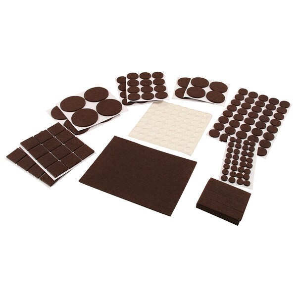 Furniture Felt Pad Assortment, Self-Adhesive Backing, Brown, Round 8 Pack