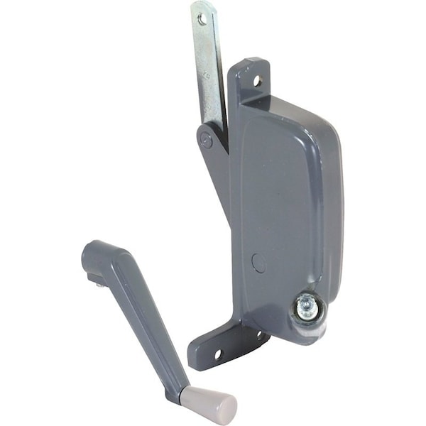 H 3668 is an awning operator of aluminum diecast construction with a gray baked enamel finish used on Air ControlKeller windows It is right handed with a matching crank handle with a 238 in link arm It has an L shaped mounting hole pattern that is 514 in from center of the top hole to the center of the bottom hole and the 2 horizontal holes in the bottom leg are 118 in apart