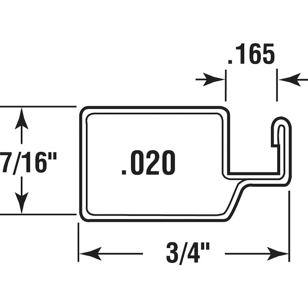 3/4 W x 7/16 H .020 gauge for replacement screens in wood double hung and casement windows. Screen retainer spline not included. Use .165 (11/64) for aluminum mesh; .185 (3/16) for fiberglass mesh.