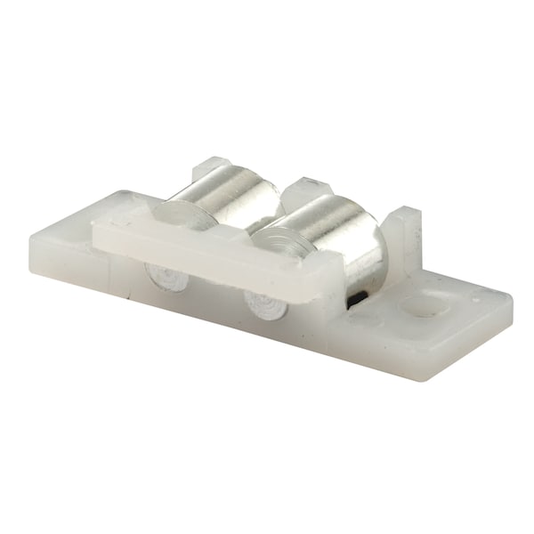 This is a white plastic housing. Flat edge tandem steel rollers. Used on Tomrays Tyco 77 dual glazed windows.Used on Tomrays Tyco 77 dual glazed windows Mounting holes are 1-3/16 in. on center 3/8 in. diameter tandem rollers Nylon housing with steel rollers Includes axle pins 2-pack Hardware not included For further dimensional information, please see the line drawing
