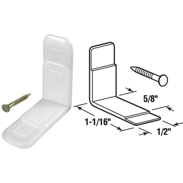 1/2 x 1-1/16 plastic wear strips for drawers. Plastic saddles mount in the front corners of drawer opening to allow for smooth operation of drawers. Includes 10 strips and 20 fasteners.