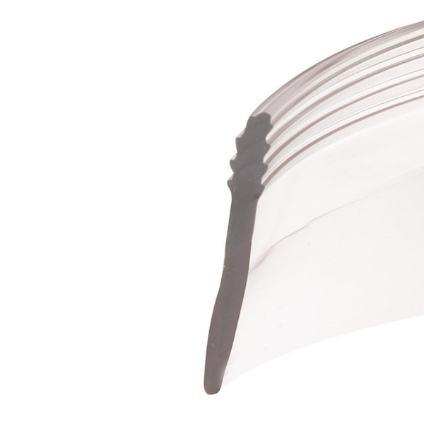 This is a clear vinyl flat style shower door sweep that is 36 inch long and 1-7/16 inch wide and can be cut to size. It is held onto the swinging shower door by a metal drip rail that is located on the bottom of the door. Easy to install, just remove the screws from the drip rail holding the old sweep and remove. Cut the new sweep to size, determine how far down the sweep needs to hang and install by replacing the drip rail over it and re-installing the screws.