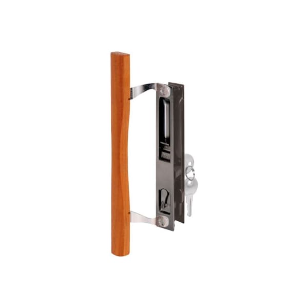 Prime-Line Door Handle Set, Flush, w/Wood Pull and Key, Black Diecast, C 1032