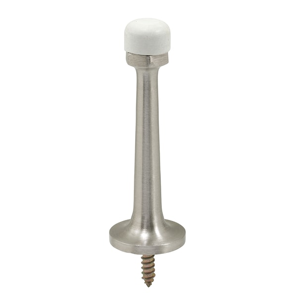 This is a rigid door stop that screws directly into the baseboard. It prevent the doorknob from hitting and damaging the wall. They are durable and easy to install.Polished Chrome finish Solid brass construction Protects door and walls Sturdy solid brass casting door stop with flexible non-mar bumper tip For further dimensional information, please see the line drawing