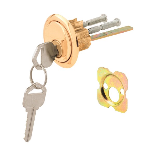 This replacement cylinder lock from Prime-Line is constructed from heavy-duty die-cast zinc and comes plates with a polished brass face. It includes a trim ring a mounting plate and two keys for your convenience. This model can also be re-keyed to fit a different key cut for your home and comes with all necessary fasteners for quick and easy installation.