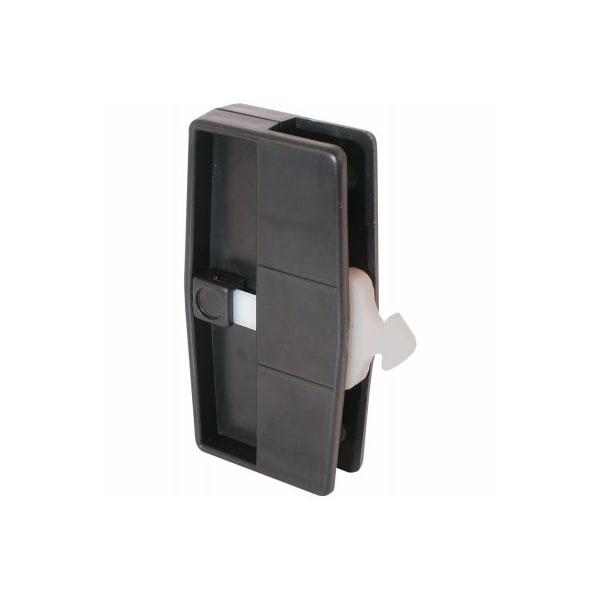 Sliding screen door handle and latch Nonhanded and used on 12 thick Columbia doors, as well as a variety of other patio door manufacturers It contains an inside pull and outside pull The handles have mounting holes that are 3 on center, and the springloaded nylon latch rotates up and down to engage the keeper Latch can be locked from the inside by the security lock Carded