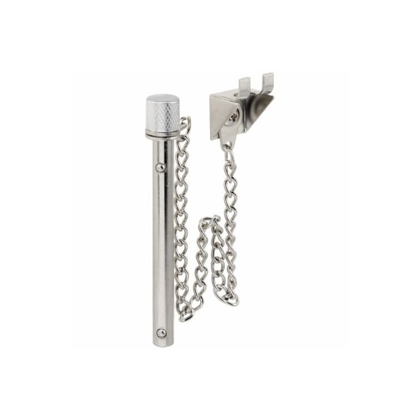 Sliding Patio Door Pin Lock with Retaining Ball, 2916 in, Steel Pin This plated steel pin protrudes through frame of sliding door panel and engages into the frame of the stationary panel to secure the active panel A stamped steel holder is included to store the pin when not in use Used to securely lock the active door panel in a closed or ventilating position, and to prevent the active panel from sliding, or from being lifted off track This pin features a springloaded steel ball to prevent the pin from being jarred loose from the door