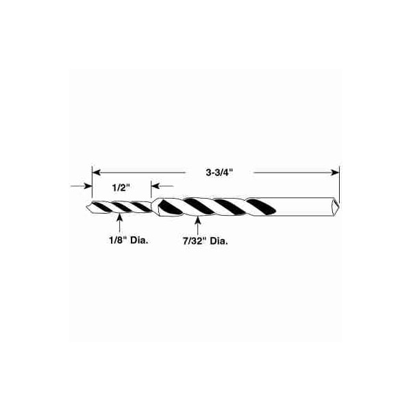 This step drill by make-2-fit is constructed of hardened steel and features two diameters in one, for specifically for use when installing aluminum screen plunger bolts. It is used to drill 2 different diameter holes in one single pass for installation of screen plunger bolts into the screen frame. The drill diameters include a 1/8 inch and a 7/32 inch bit diameter, and the larger diameter is only intended to pass one layer of the hollow aluminum screen frame. For best results, follow the installation instructions included with each package.