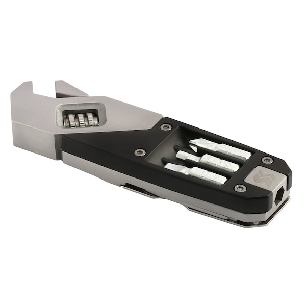 The Swiss+Tech X-Drive Adjustable Wrench Multi-Tool is a versatile, 7-in-1 tool for the toolbox, glove compartment or emergency kit. This stainless steel wrench features a Phillips #2 driver bit, a flat #2 driver bit, flat 3/32-in. screwdriver, Allen 1/8 in. driver bit, a hook knife and serrated knife. It features precision-action wrench adjustment and a bit socket with a magnetic lock to fit all standard 1/4 in. bits. This professional grade tool delivers heavy-duty, long-lasting reliability for a wide range of repair tasks.Adjustable 7-in-1 wrench Multi-Tool for the toolbox, glove compartment or emergency kit Features a Phillips #2 driver bit, a flat #2 driver bit, flat 3/32 in. screwdriver, Allen 1/8 in. driver bit, a hook knife and serrated knife Also includes: Precision-action wrench adjustment, bit socket with magnetic lock to fit all standard 1/4 in. bits Stainless steel wrench adjustment, bit socket and knife blades; Steel slide-out bits Great tool for men and women gifts, for use during camping, outdoors, hunting, or everyday use