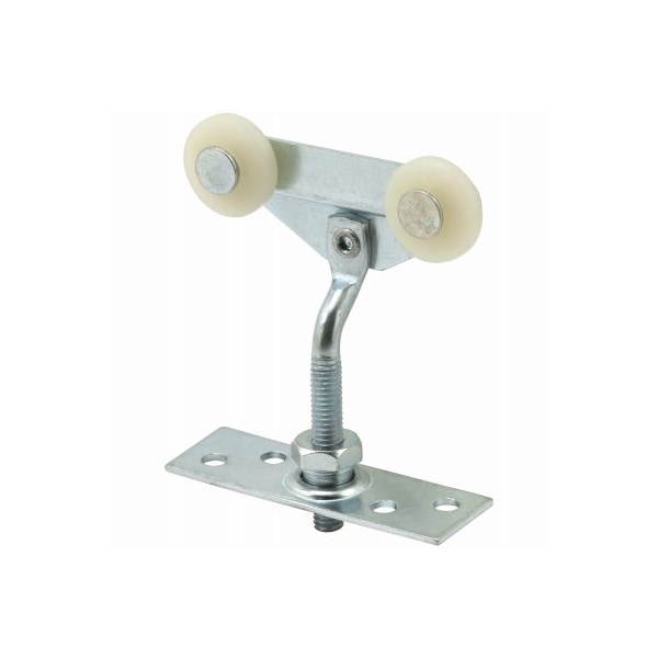 This is a top, center mounted, adjustable, tandem roller assembly The 34 in convex edged nylon rollers are attached to a stamped steel tandem housing mounted on top of a 516 in threaded steel rod Used on Harvey closet doors 34 in to 138 in thick