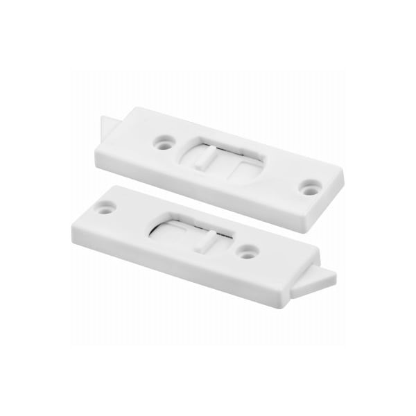 This is a springloaded tilt latch for both single and double hung vinyl windows This is an injected molded plastic in white with fasteners Used on sash panels designed to tiltin and down from the top for cleaning, 338 in in length, 114 in width and 2516 in hole centers, 516 in backset Each package contains 1 lefthand latch and 1 righthand latch to repair 1 window each