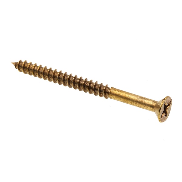 Wood Screw, Flat Head, Phillips Drive No. 8 X 2in Solid Brass 50PK