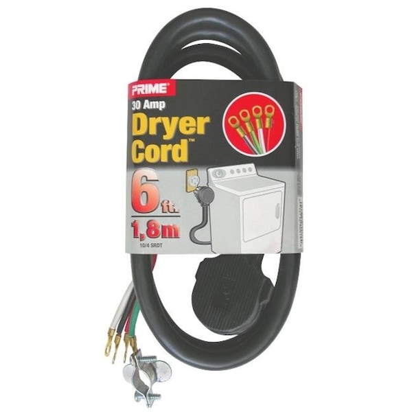 Prime RD100406L Black 30 Amp Dryer Cord; 6ft. (Discontinued)