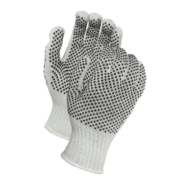 Two Sided Black PVC Dots Medium Weight String Knit Gloves, Men's Size, PR