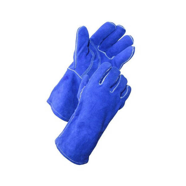 - These blue split cowhide leather welding gloves are built for durability and heat resistance, featuring aramid fiber stitching for enhanced strength in high-heat environments.
