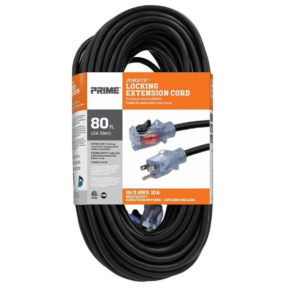 Prime Jobsite Outdoor 80 ft. L Black Extension Cord 16/3 SJTW