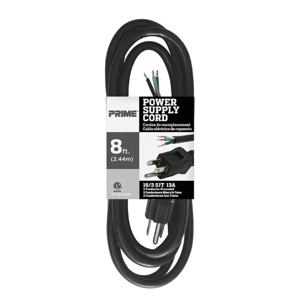 Prime 16/3 SJT 125 V 8 ft. L Replacement Power Cord