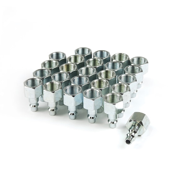 The Primefit IP1438FS-B25-P (25-Pack) I/M Industrial Steel 1/4" x 3/8" Female Plug is professional grade with zinc plated steel construction for high corrosion resistance and longer life.