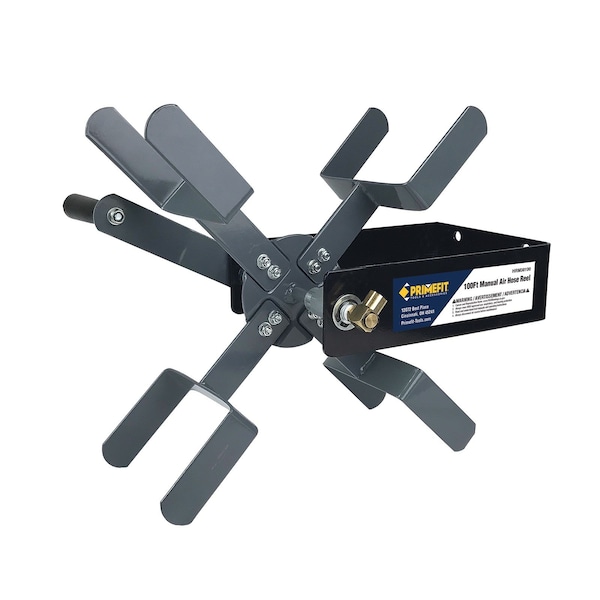 Primefit HRM38100 Manual Air Hose Reel fits 100 Feet of 3/8-in. Air hose, 150 Feet of 1/4-in. Air Hose, or 50 Feet of 1/2-in. Air hose