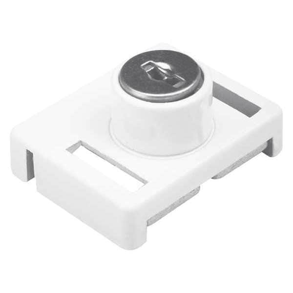 Window Lock, Flip, Die Cast Zinc, Painted, Length (In.) 1 3/8 in, Height (In.) 29/64 in, Width (In.) 1-47/64, Base Size (In.) 1-23/32 x 1-3/8, Includes (2) Keys, Color White