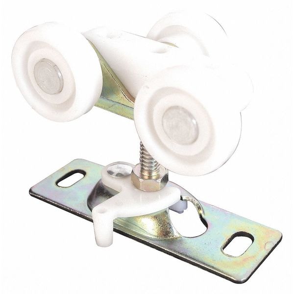 Closet Door Roller, Sliding Door, Max. Weight (Lb.) 60, Nylon, Silver, Unfinished Finish, Shaft Length 1-45/64 In., Length (In.) 3-45/64, Height (In.) 9-23/64, Width (In.) 3-45/64, Depth (In.) 1-45/64, Inside Dia. 1/4 In., Outside Dia. 1-1/8 In., Wheel Diameter 1 In., Max. Wheel Dia. (In.) 1-1/8, Roller Width/Dia. (In.) 7/8, Door Mounting, Mounting Hole Size (In.) 3/16, Steel Bearings, Number of Wheels 3, Steel, Hardware Included, Requires Hardware, For Use With Pocket Door, 1 Pair