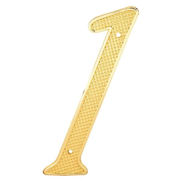 4 in. House Number 1, Diecast, Brass Finish (5 Pack)