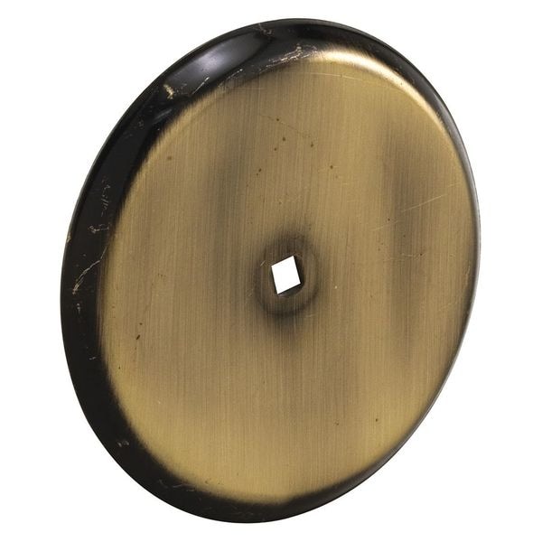 These cabinet knob backplates are constructed of stamped steel and come in an antique brass plated finish. Backplates like these are used on both cabinet doors and drawer faces to prevent the wearing of finished wood, and the unsightly accumulation of dirt and grime. They feature a large 2-13/16 inch outside diameter and they project outward a total of 3/16 inch These cabinet knob backplates do not include any installation fasteners, but they come with pre-punched holes for quick and easy installation.